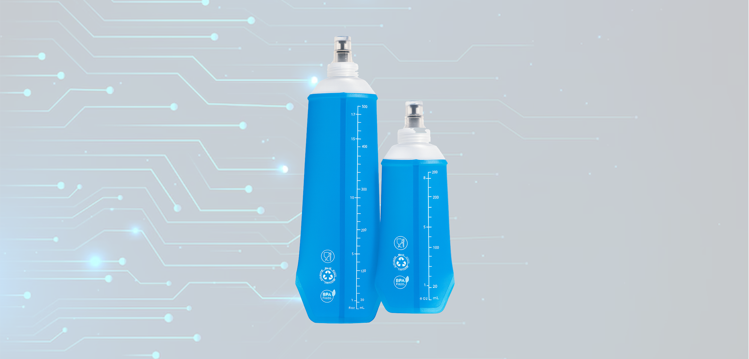 De flesjes zijn ontworpen om tijdens het drinken mee te krimpen, waardoor er minder geschud en geklots is. Dankzij de zachte body passen ze comfortabel in een running belt, hardloopvest of in de hand.